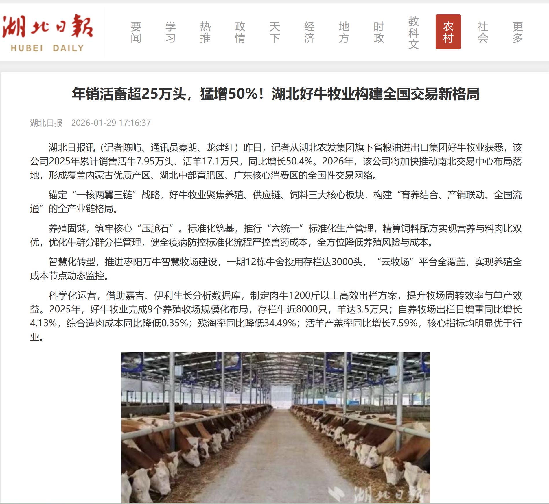 湖北日報(bào):年銷活畜超25萬頭,猛增50%!湖北好牛牧業(yè)構(gòu)建全國交易新格局